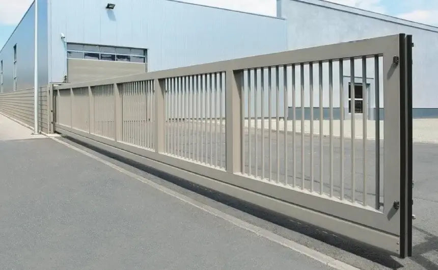 TriAxis Modern – Geometric Slat Steel Driveway Gate Model # DWG070