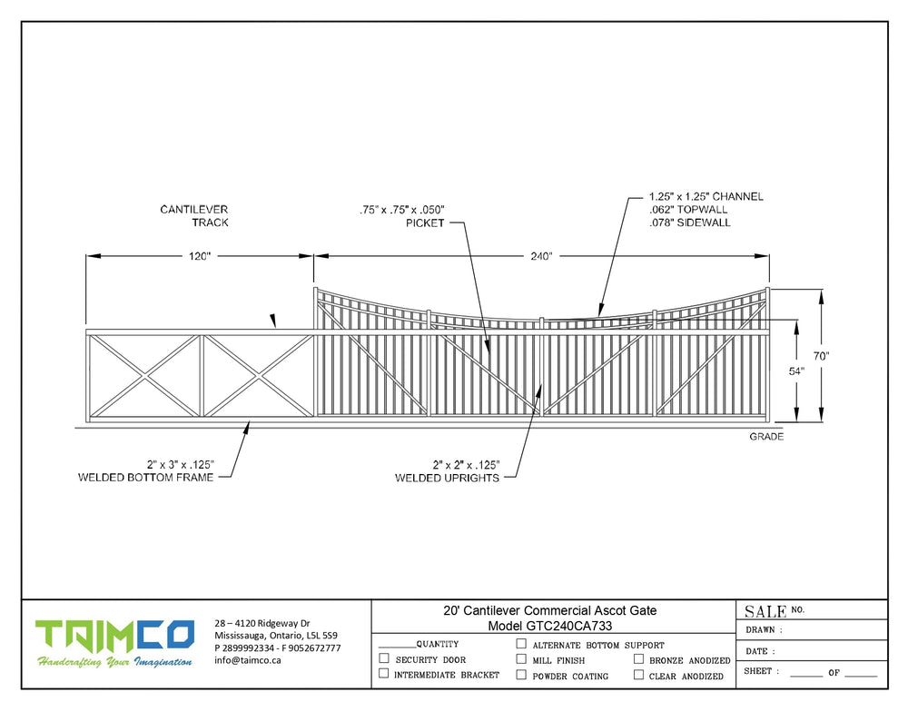 Cantilever Commercial Ascot Gate - Ornament Pickett - Model GTC240CA733