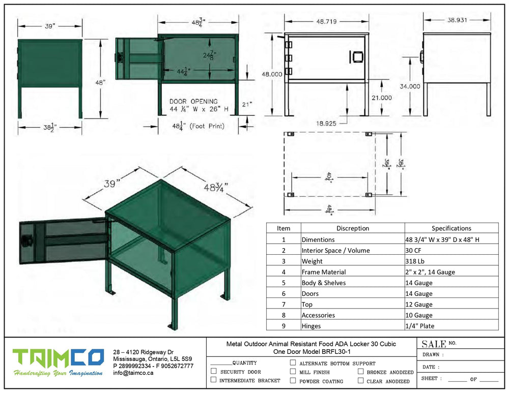 TAIMCO BRFLADA30-1 – Animal-Resistant Food Storage Locker