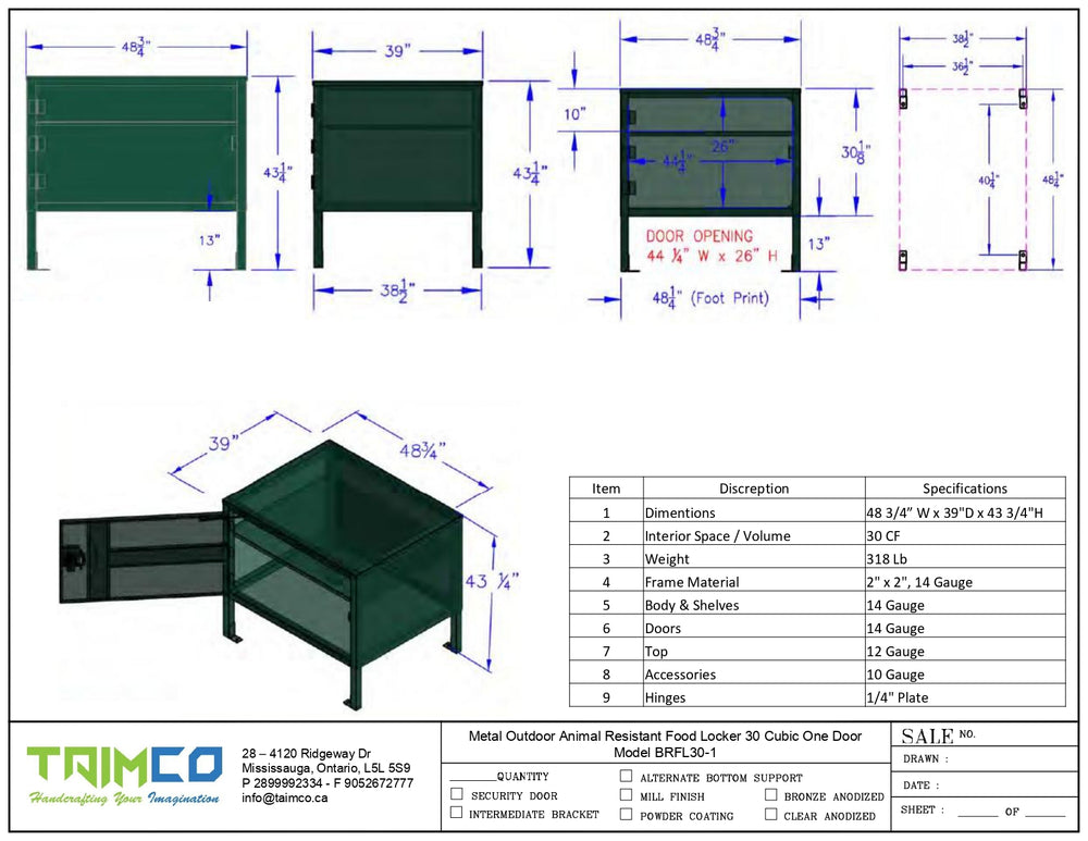 TAIMCO BRFL30-1 – Animal-Resistant Food Storage Locker