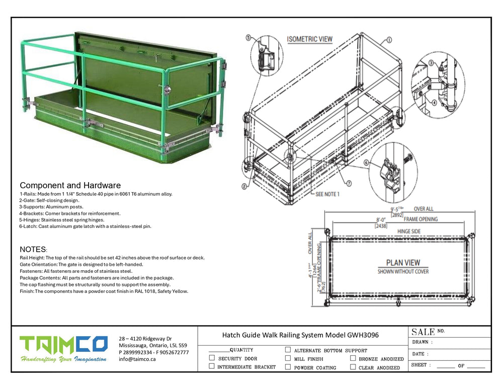 - Are you looking for a reliable solution to ensure fall protection for your thermally broken roof hatch? The TAIMCO GWH3096 Thermally Broken Roof Hatch Safety Railing System is your perfect match!