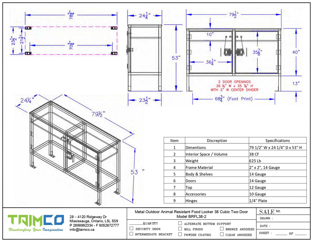 TAIMCO BRFL38-2 – Animal-Resistant Food Storage Locker