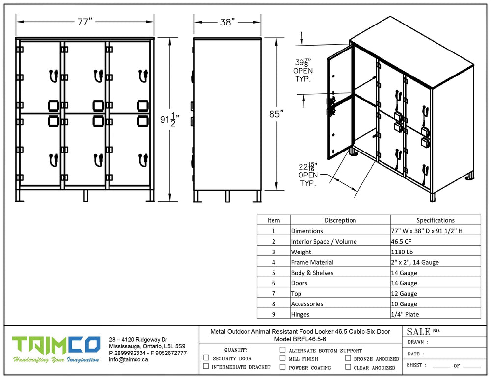 TAIMCO BRFL465-6 – Animal-Resistant Food Storage Locker