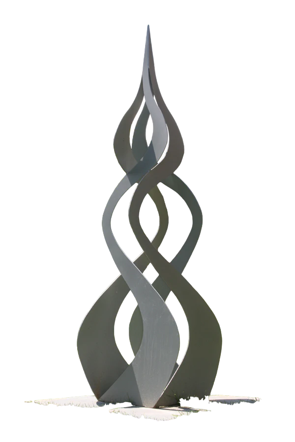 Enhance your outdoor area with this striking abstract flame metal sculpture. Featuring intertwining curves and points, this piece creates a dynamic and captivating visual effect. Its flame-like shape and metallic finish make it a standout addition to any garden or park.