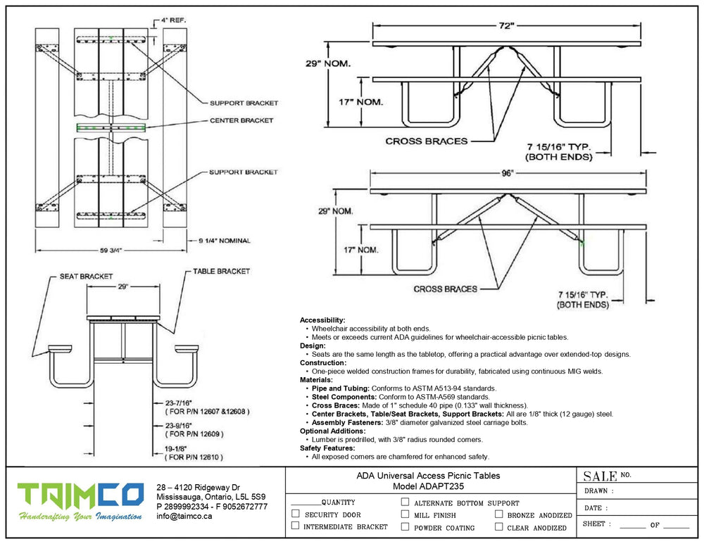 - these Universal Access Picnic Tables use either Standard Steel Tubing or Medium Standard Steel Tubing.