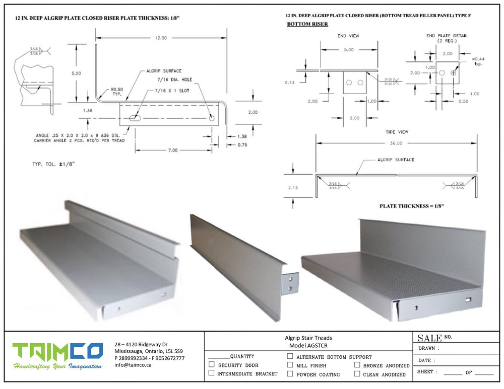 Taimco AGST Slip-Resistant with closed Riser Stair Treads are designed to provide unparalleled safety and durability. Manufactured with a precision laser deposition process, these stair treads feature a custom alloy slip-resistant surface that ensures reliable traction even in challenging conditions. They are ideal for both indoor and outdoor applications.
