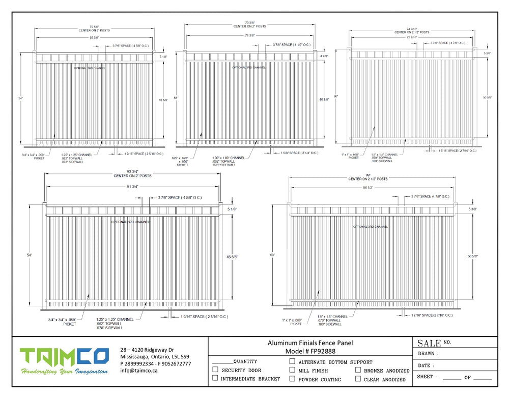 Aluminum Finials Fence Panel - Model # FP92888