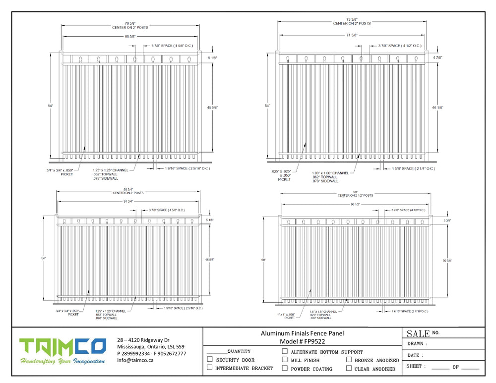 Aluminum Finials Fence Panel - Model # FP9522