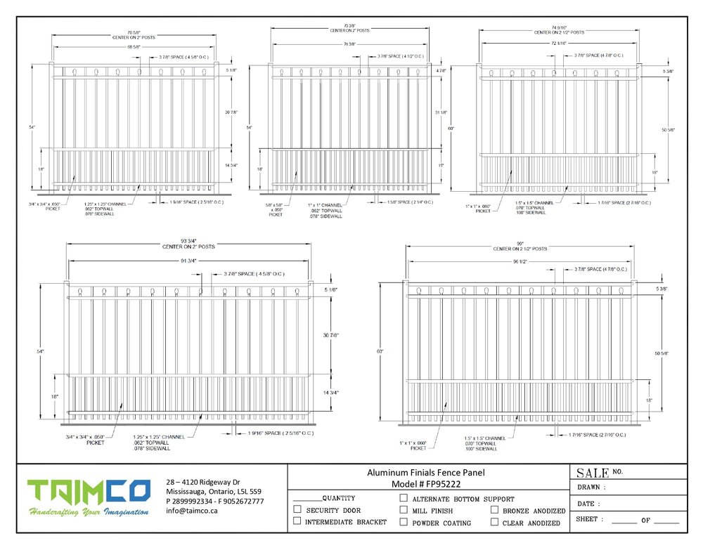 | Picket size/wall: | 5/8" sq. x .050" wall |