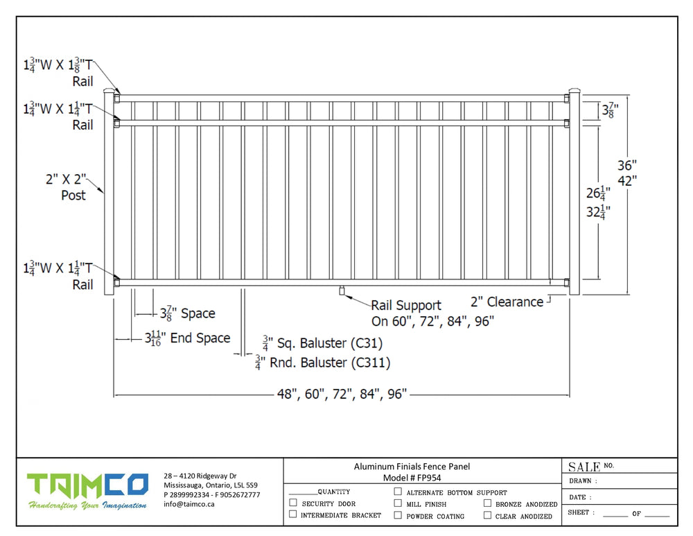 | Picket size/wall: | 5/8" sq. x .050" wall |