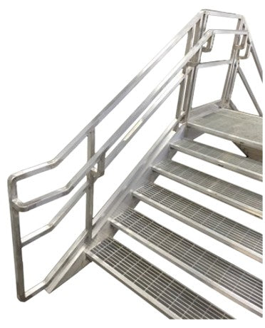 - Tread Options: Choose between 11" deep open riser diamond plate/bar grating treads or 12" deep closed riser diamond plate treads.