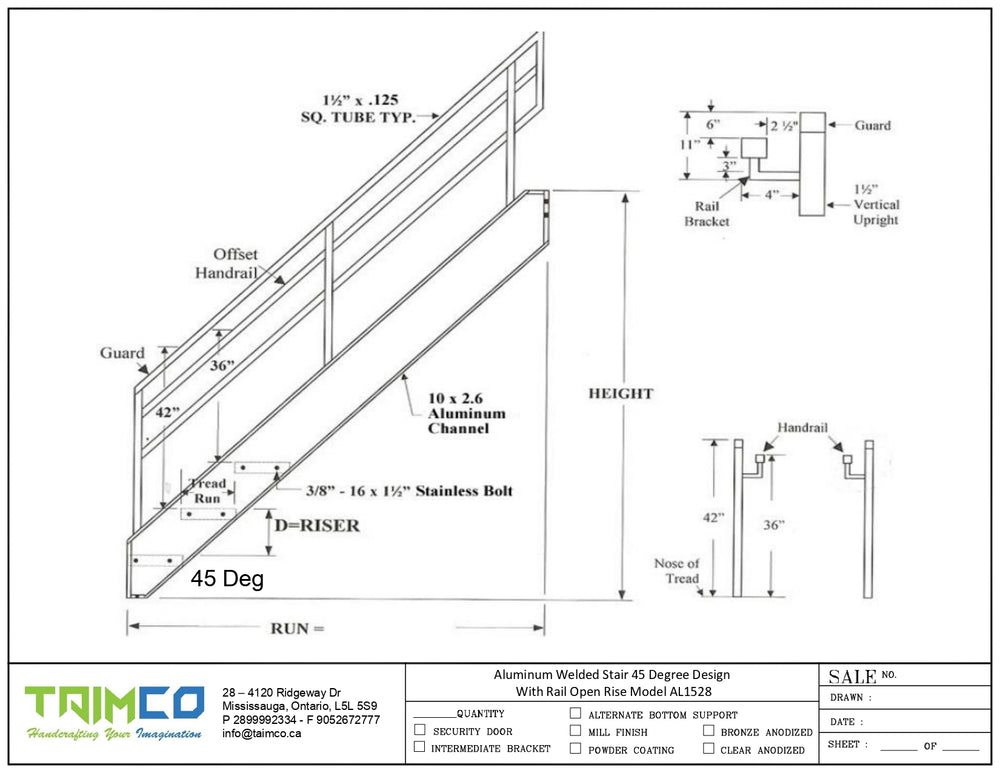 Taimco Welded Aluminum Prefabricated Stairways - 45 Degree Design