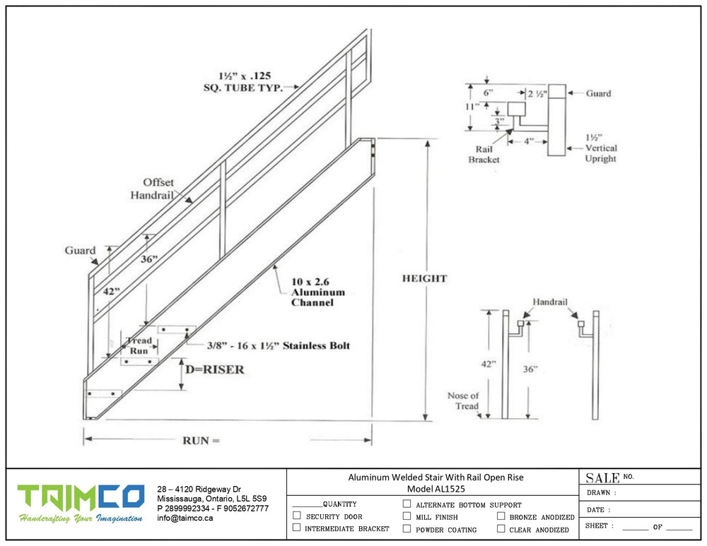 Aluminum Welded Stair With Rail Open Rise Model AL1525