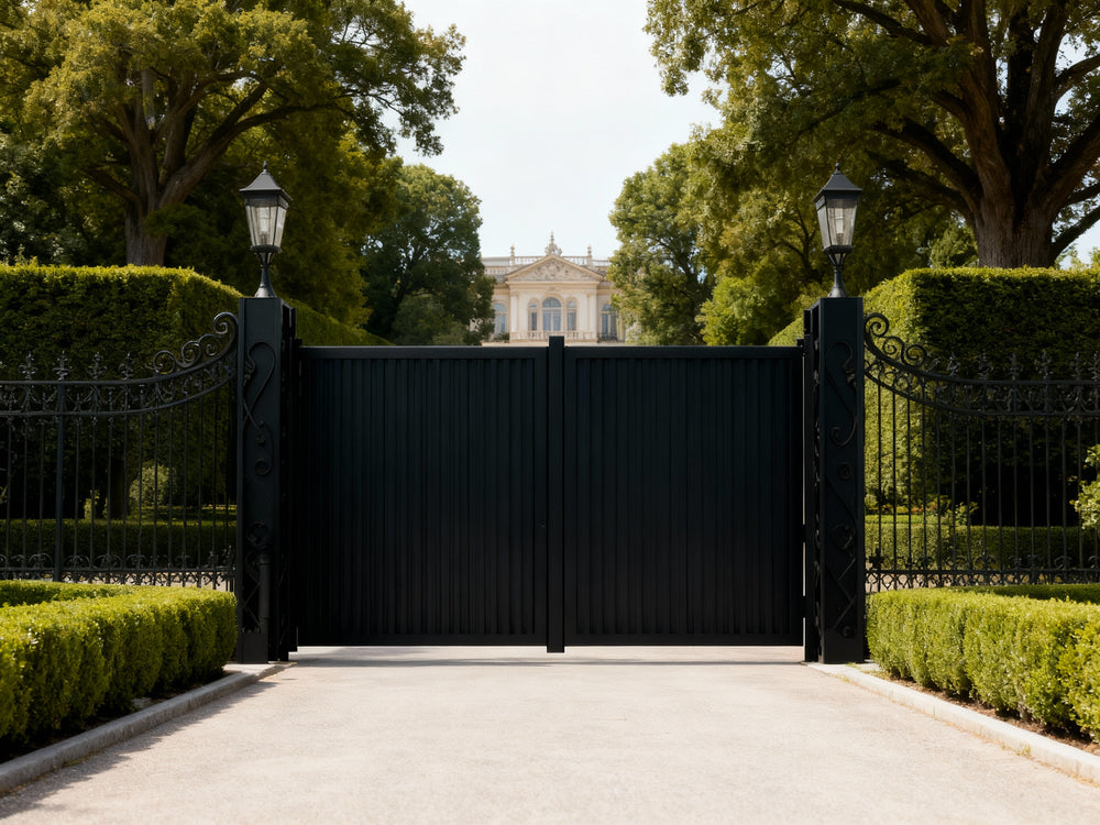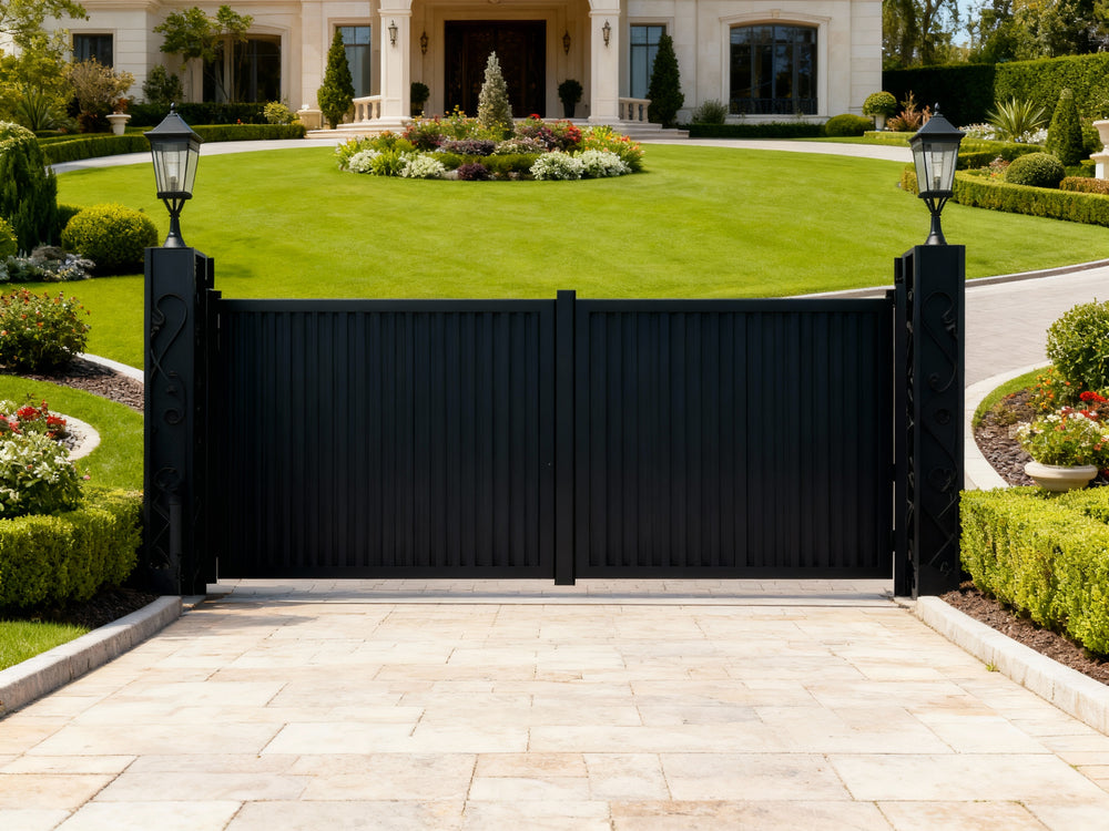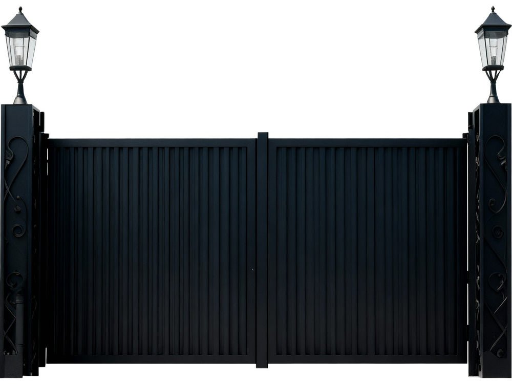 A gate that balances strength with softness. Lanternline Arbour features dual swing panels with vertical slats framed by ornamental side pillars topped with classic lanterns. The design offers privacy and structure while allowing for subtle decorative flourishes—perfect for homes that blend tradition with modern craftsmanship.