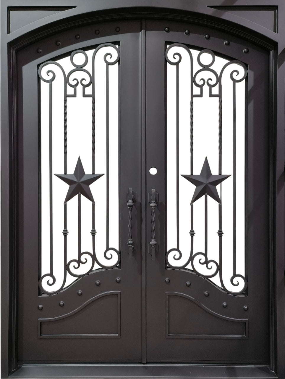 arched wrought iron doors star motif iron entry doors twisted handle metal doors Taimco IWD 1063 custom scrollwork iron doors ornamental black double doors galvanized steel entrance door wrought iron doors Canada premium iron doors with glass exterior iron doors for homes