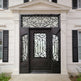 arched wrought iron door, double steel entry with transom, scrollwork iron door design, luxury black metal door, ornamental steel door Canada, heritage style iron gate, decorative steel front door, grand entry steel door, architectural iron door Mississauga, custom scrollwork iron door