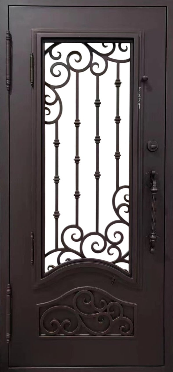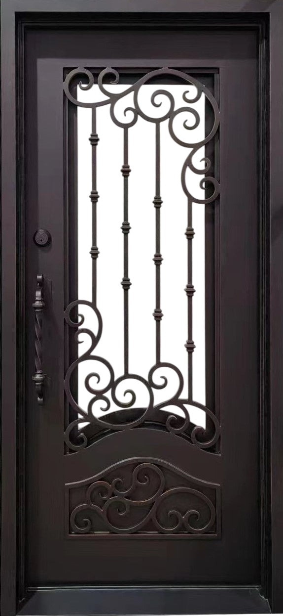 - Decorative Scroll-Work: Standard iron entry doors come with decorative 5/8" square solid steel scrollwork.