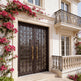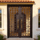 - Design: Arched-top double doors with decorative wrought iron scrollwork