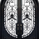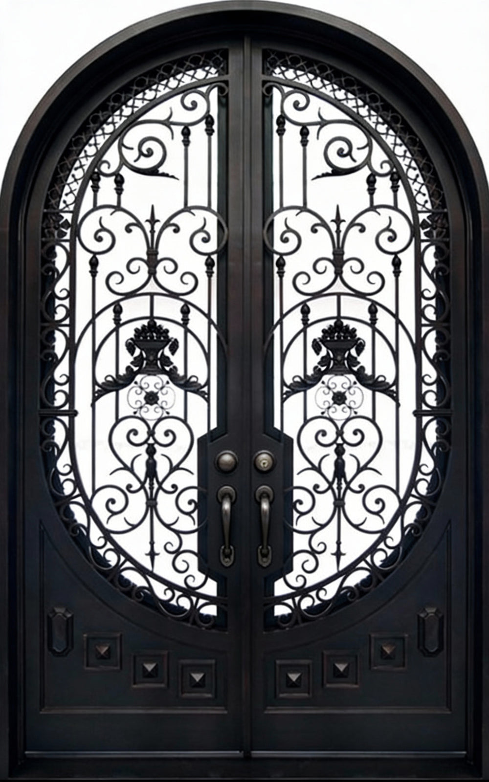 - Design: Arched-top double doors with decorative 5/8” solid steel scrollwork