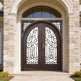 Arched Wrought Iron Entry Door Scrollwork Design with Integrated Kickplate Model IWD1027