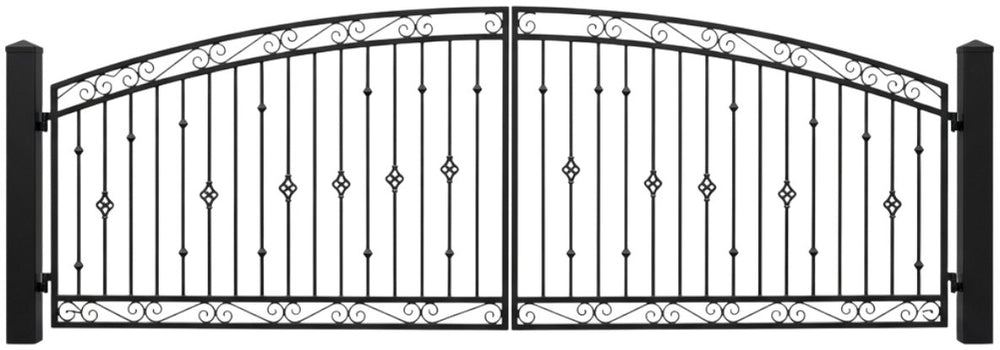 Archeline Heritage – Arched Wrought Iron Driveway Gate with Scrollwork Model # DWG063