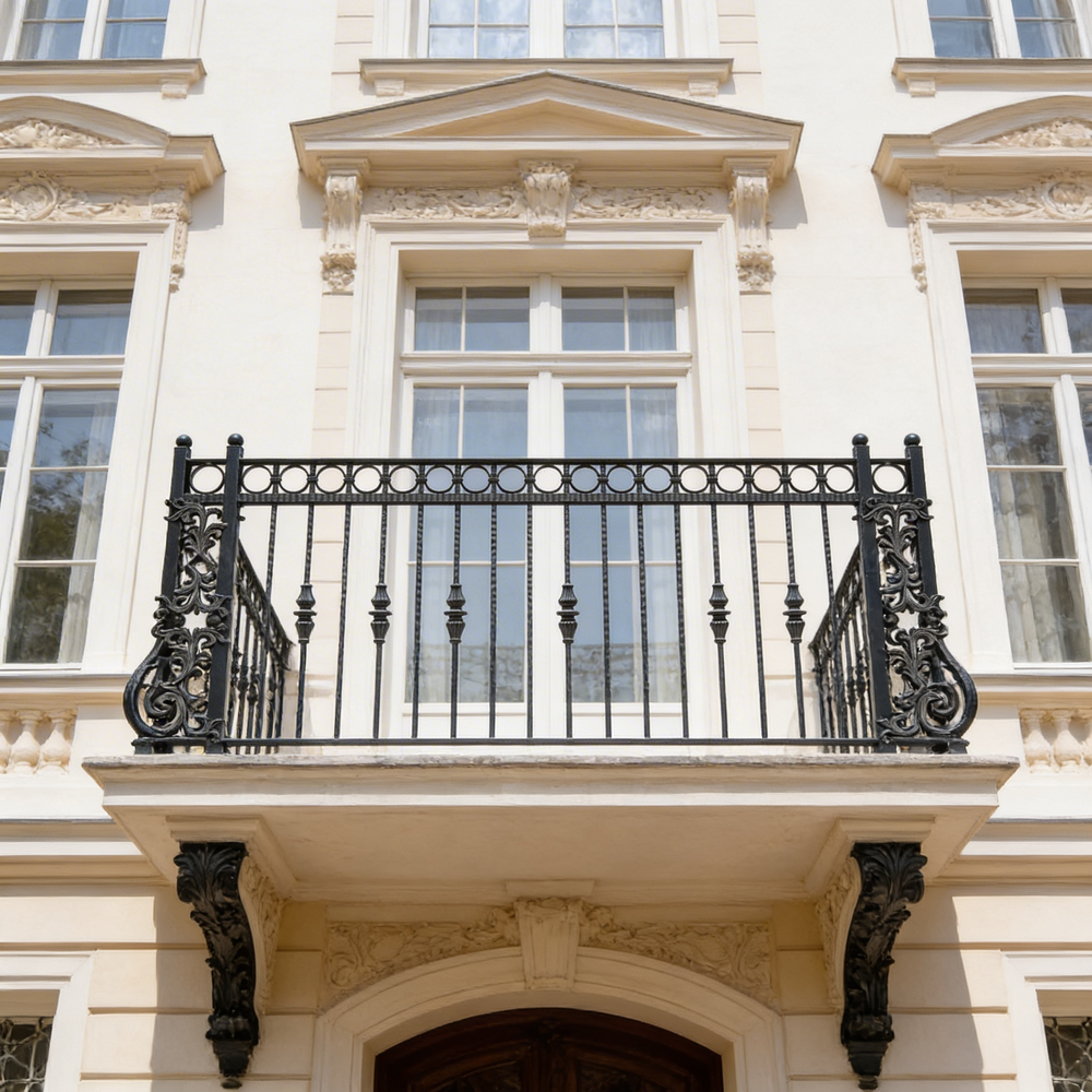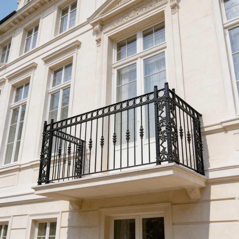 Ornamental balcony railing, Steel balcony railing, Decorative balcony railing, Elegant balcony railing, Durable balcony railing, Customizable balcony railing, Weather-resistant balcony railing, Residential balcony railing, Commercial balcony railing, Balcony safety railing,