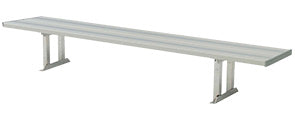 The TPB6NB aluminum player benches from Taimco feature 2" x 10" extruded aluminum seats and frames. Frames are available for surface mount or in-ground installation. Included galvanized hardware will not rust like zinc-plated hardware. These series of benches do not come with a backrest.