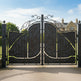 copper scrollwork driveway gate, ornamental wrought iron gate, custom steel entrance gate, Canadian luxury gate, Taimco decorative gate, lattice and scroll gate design, heavy-duty artistic gate, estate gate with bronze accents
