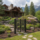 butterfly motif man door, ornamental scroll metal gate, floral garden entry, Canadian custom gate, Taimco decorative passage door, manual operation estate gate