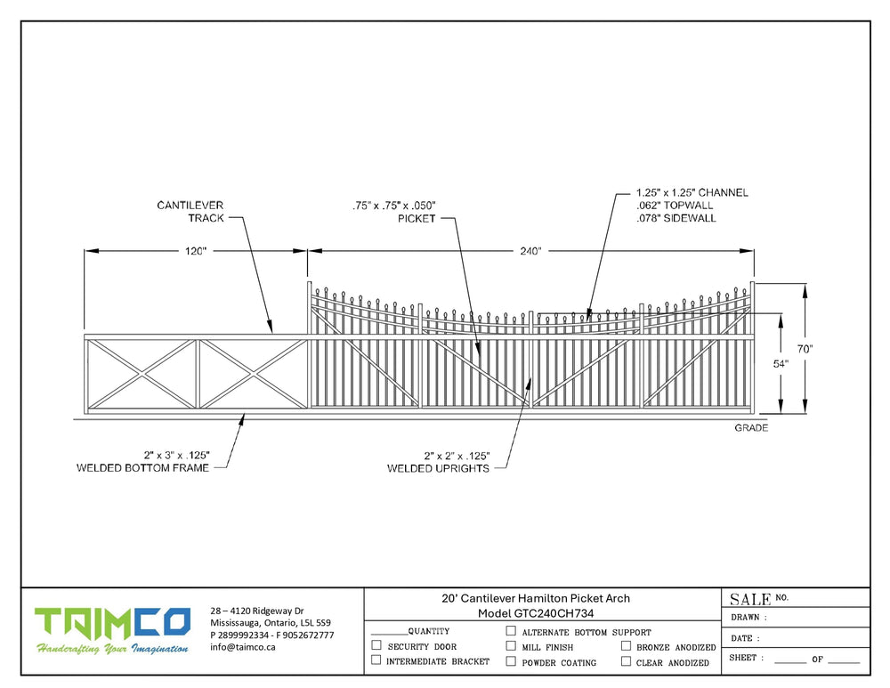Cantilever Commercial Ascot Gate - Ornament Pickett - Model GTC240CH734