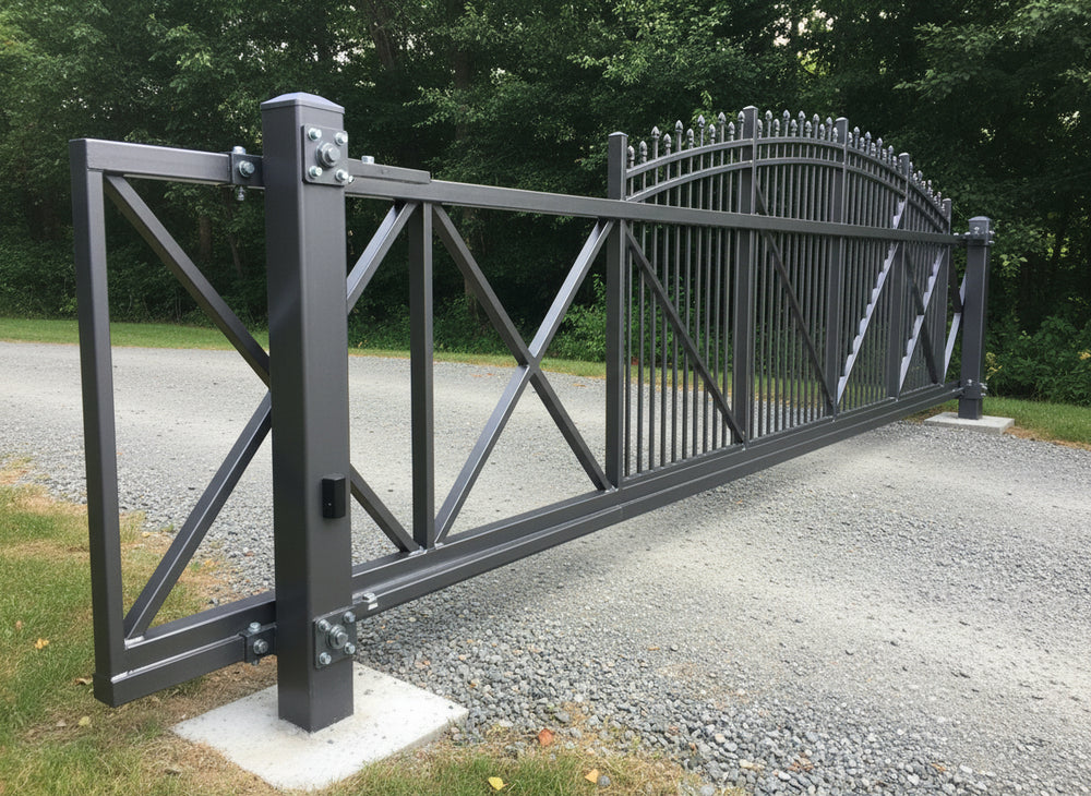 - Metal: Gate panels are made of aluminum alloy extrusions, ensuring strength, durability, and lightweight construction.