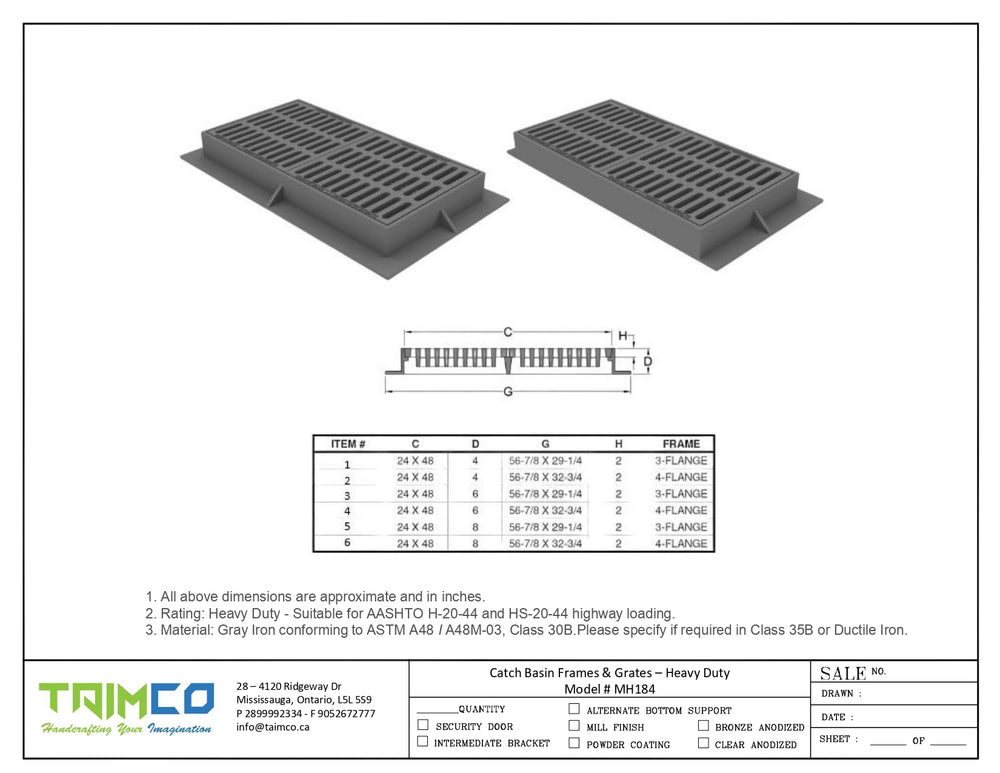 - Material: Gray Iron conforming to ASTM A48 I A48M-03, Class 30B. Please specify if required in Class 35B or Ductile Iron