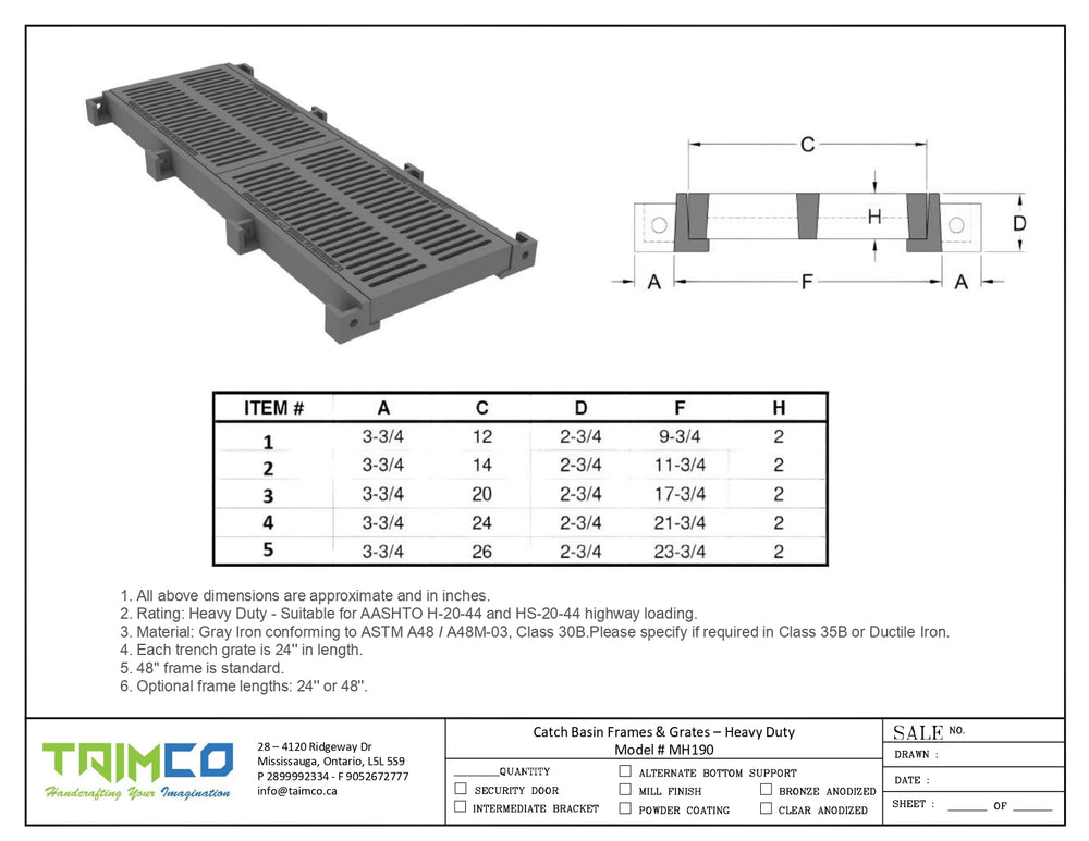 - Material: Gray Iron conforming to ASTM A48 I A48M-03, Class 30B. Please specify if required in Class 35B or Ductile Iron