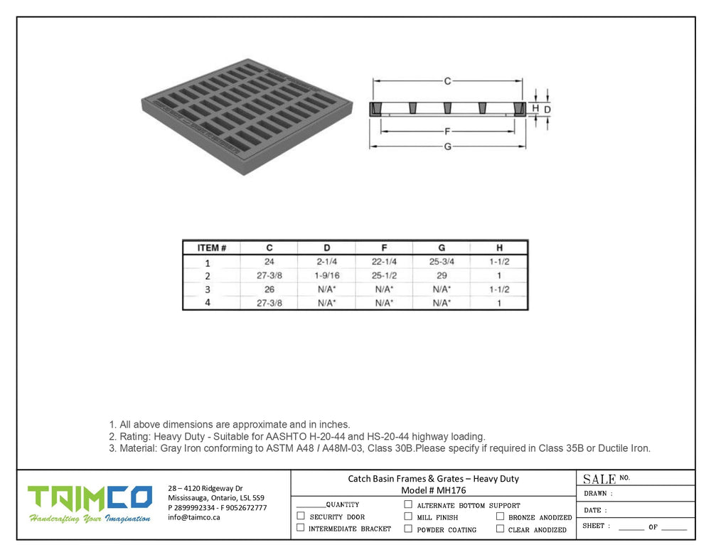 - Material: Gray Iron conforming to ASTM A48 I A48M-03, Class 30D. Please specify if required in Class 35B or Ductile Iron