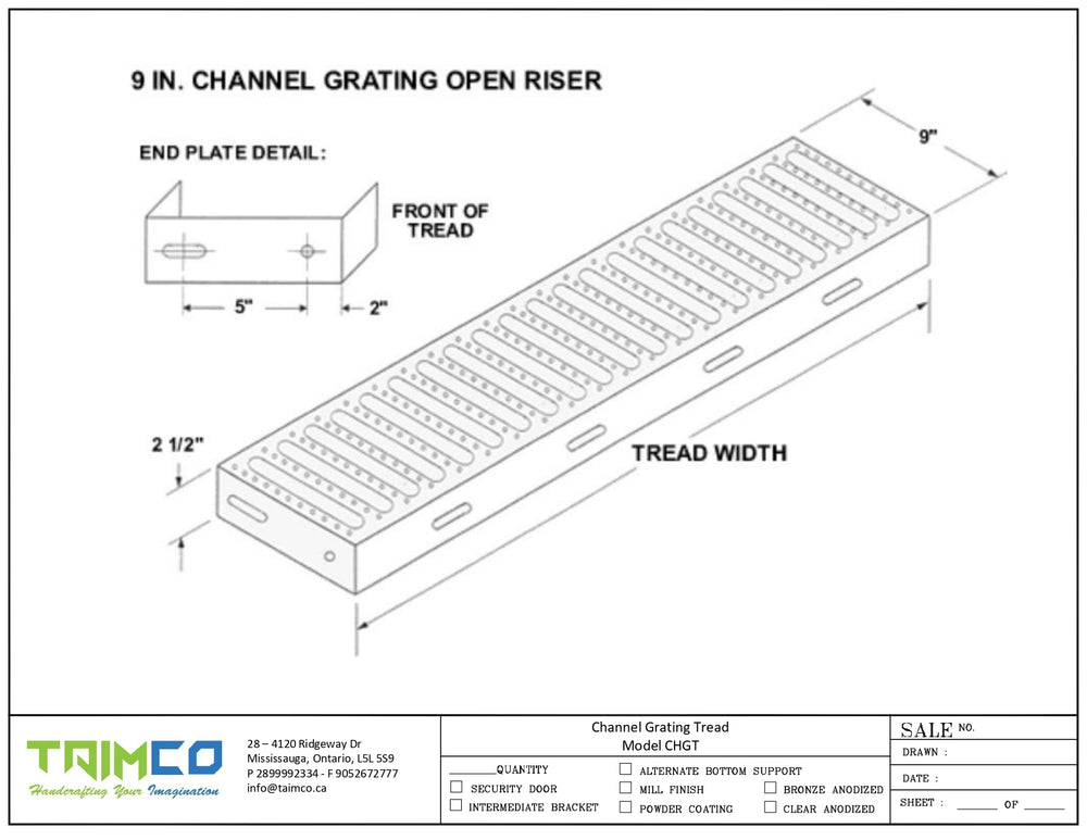 Taimco Channel Grating Treads, CHGT Open Riser Treads, Industrial Stair Treads, OSHA Compliant Treads, Durable Galvanized Treads, Heavy-Duty Steel Stair Components, Slip-Resistant Grating Treads