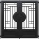 Circlegrid Passage – Modern double-panel man door with circular centerpiece, geometric gridwork, and solid base panels Model # MG320