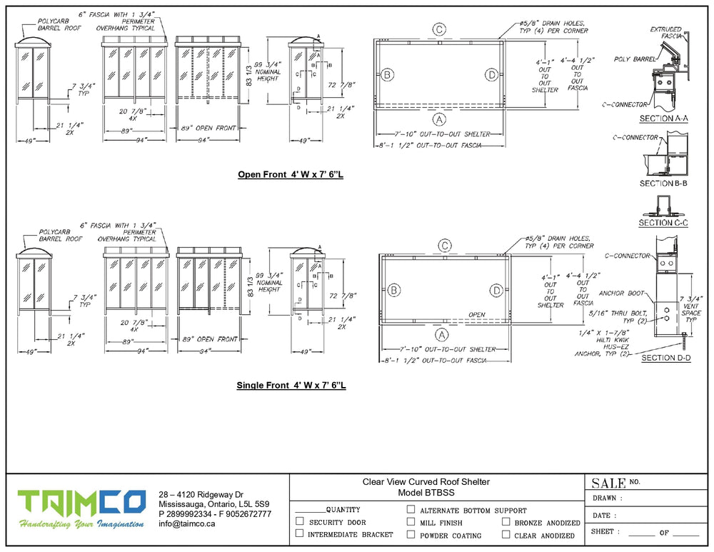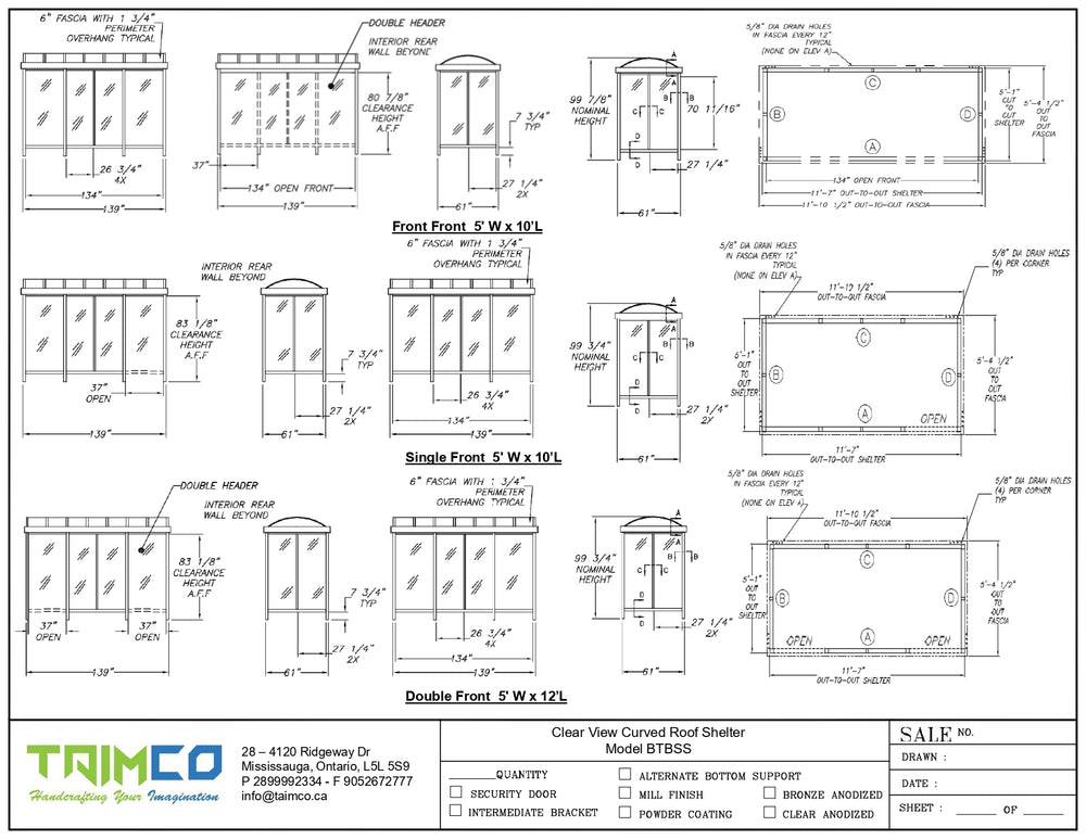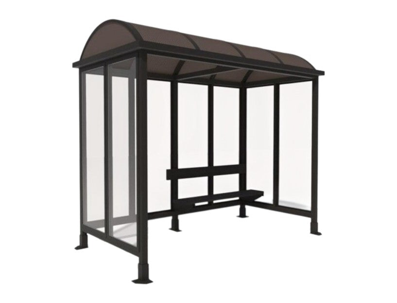 The TAIMCO BTBSS Metal Bus Shelter is a modular, prefabricated transit shelter built for public transportation stops, smoking areas, and urban spaces. Designed with high-quality aluminum and tempered safety glass, it ensures weather resistance, durability, and low maintenance. Its translucent curved roof offers UV protection, while the reinforced frame guarantees long-lasting performance.