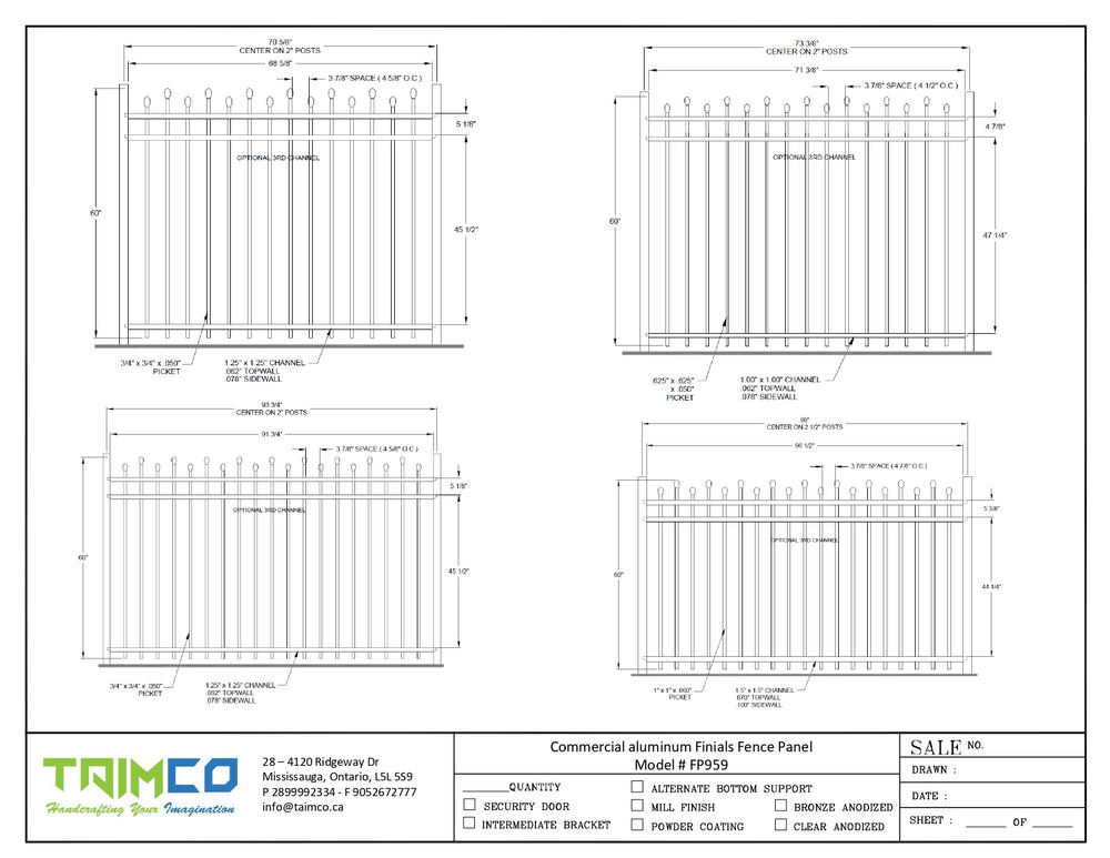 Commercial aluminum Finials Fence Panel - Model # FP959