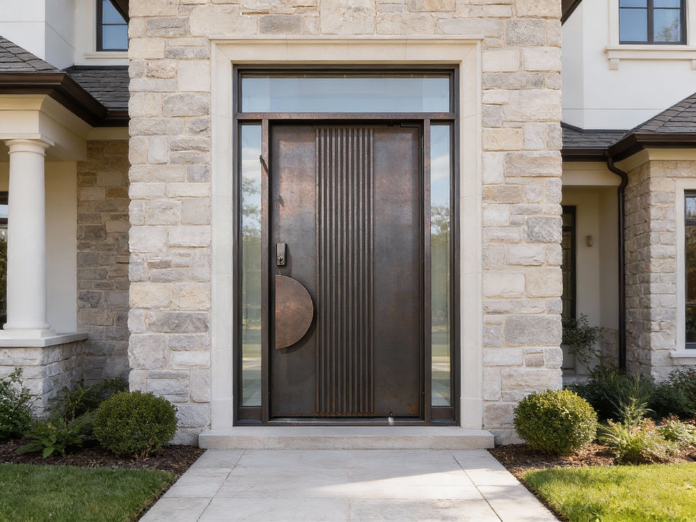 Elevate your entrance with the bold simplicity of our Contemporary Ridge Panel Iron Door. This design pairs architectural minimalism with refined texture, creating a striking presence for residential and commercial exteriors.