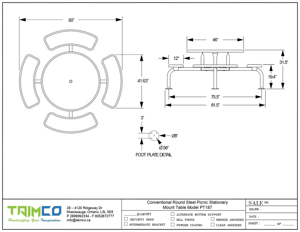 Conventional Round Steel Picnic Stationary Mount Table Picnic Table & Seat - Model PT187