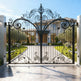 Crestspire Legacy – Wrought Iron Gate with Scroll Arch & Central Emblem Model # DWG193