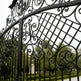 Crestveil Manor – Wrought Iron Gate with Lattice Panels & Emblem Arch Model # DWG136