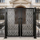 curved lattice man door, geometric metal gate, wave pattern garden entry, Canadian custom gate, Taimco Curvex Passage model, manual operation decorative door