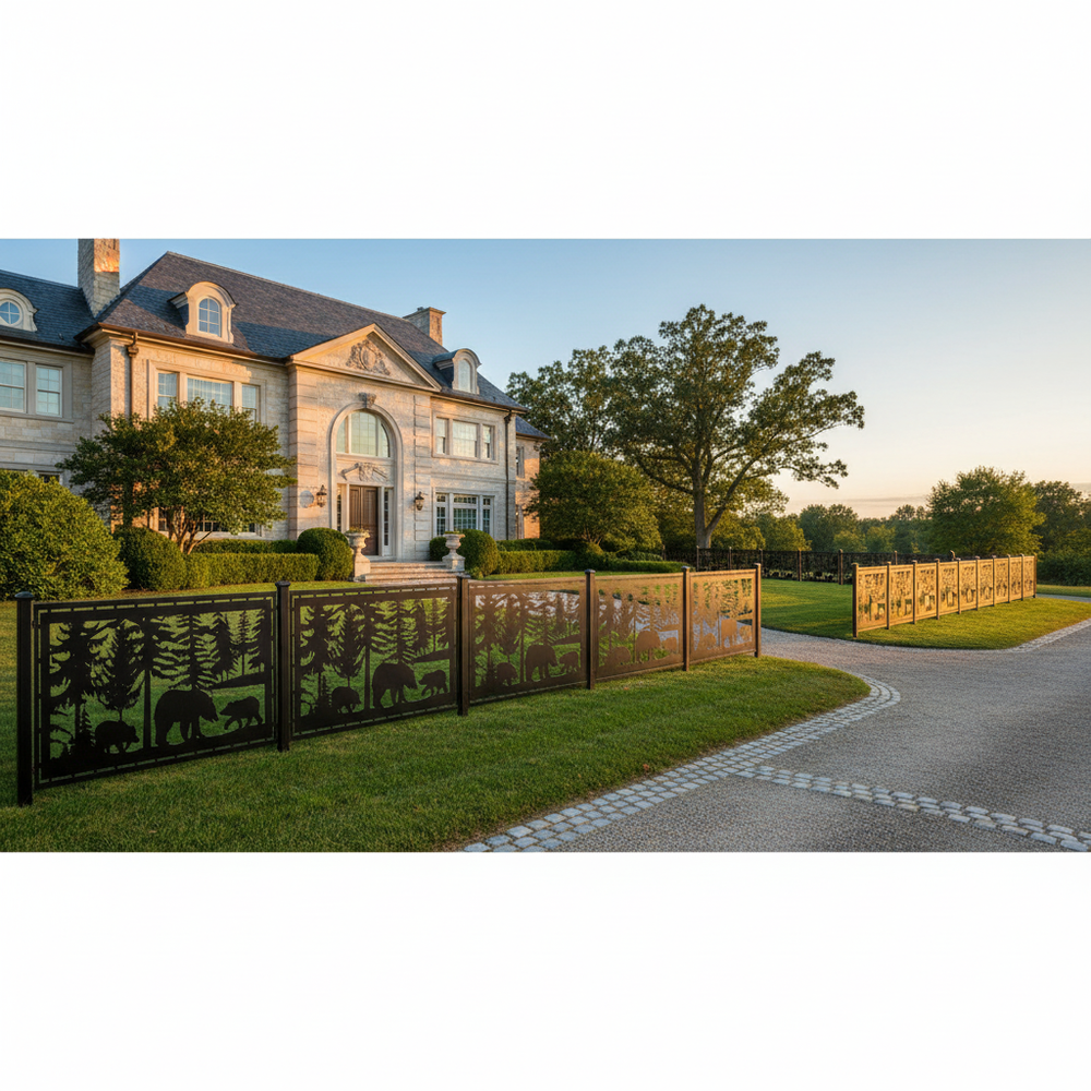 Plasma-cut fence panel, Decorative metal fence, CNC plasma cutting, Custom fence design, High-quality steel fence, Durable fence panel, Ornamental fence, Precision cutting technology, Powder-coated fence, Residential fence, Commercial fence