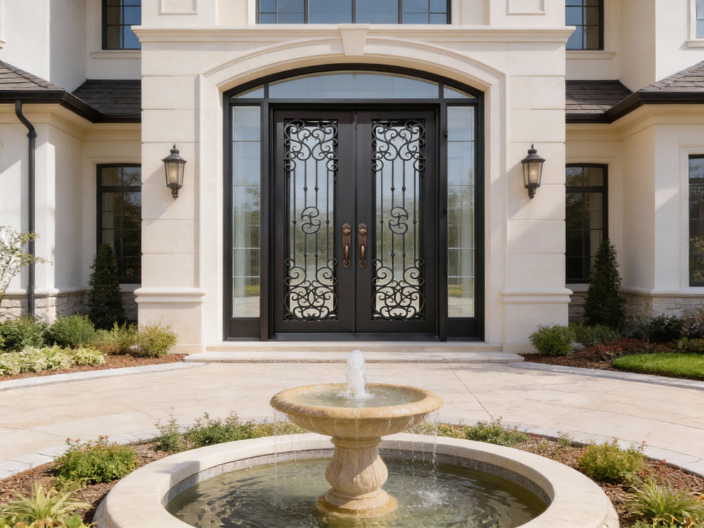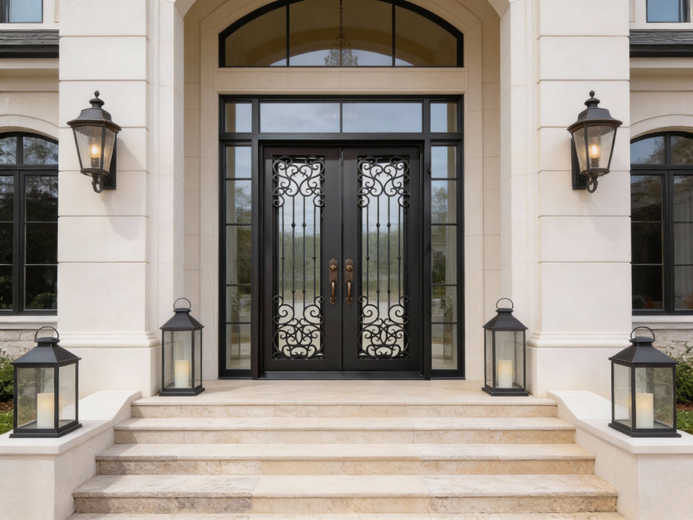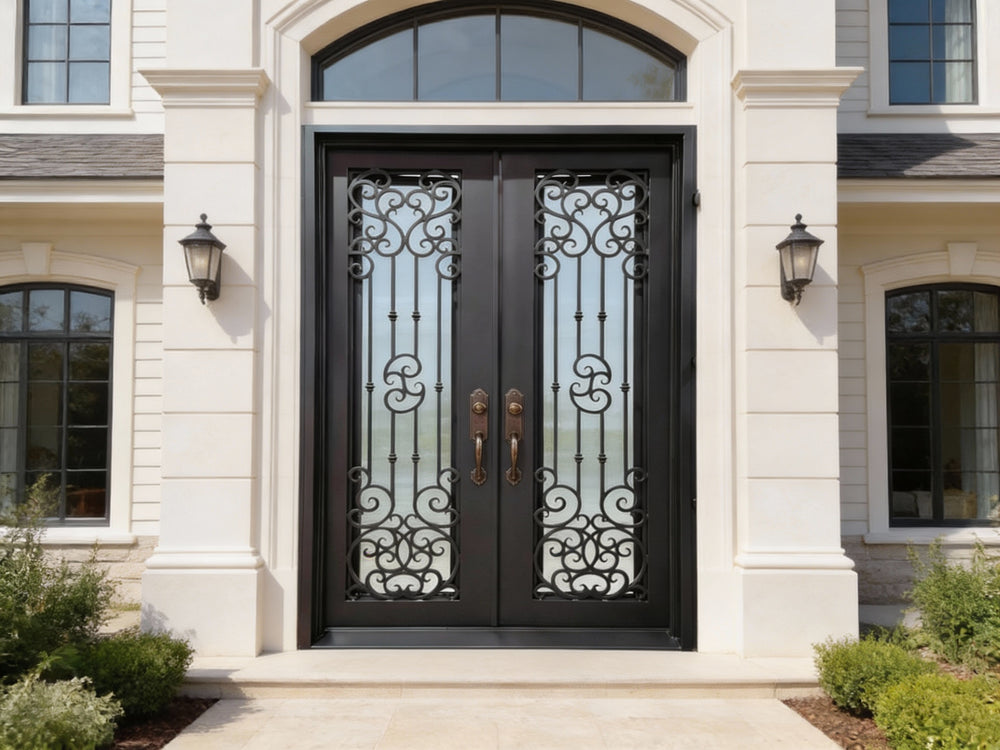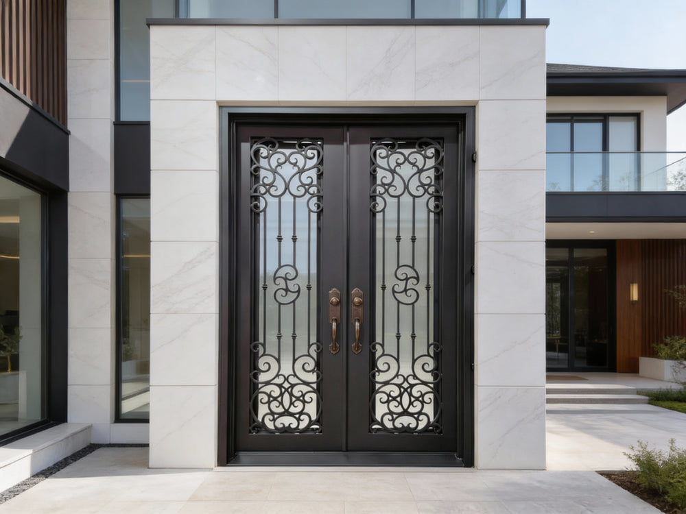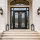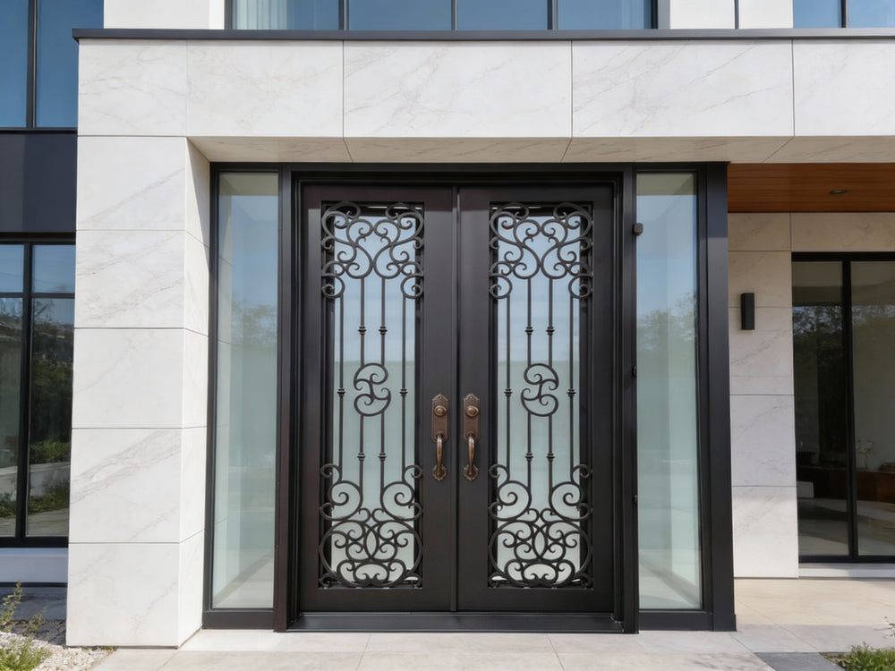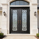 Crafted from hot-dipped, powder-coated galvanized steel, this wrought iron door blends strength and artistry. Its square top silhouette and integrated kickplate provide a bold architectural statement, while the decorative scrollwork and double-pane insulated glass offer refined elegance. Designed to withstand weather and time, it seamlessly balances security, beauty, and energy efficiency, making it a premium choice for both modern and traditional entrances.