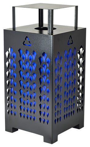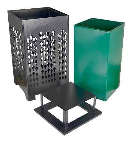 Enhance your outdoor spaces with the TAIMCO WR230 32-Gallon Decorative Square Trash Receptacle, designed for both aesthetics and functionality. This all-steel commercial-grade trash receptacle features creative laser-cut accents, blending durability with a modern visual appeal. Ideal for public spaces, parks, office buildings, and commercial areas, it ensures efficient waste management while complementing the environment. Choose from three lid options to suit your needs, and pair it with matching powder-coated steel planters for a cohesive look. The included 100% recycled plastic liner promotes sustainability, making this an eco-friendly choice.