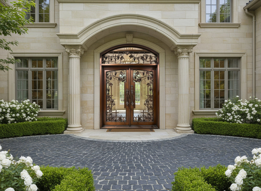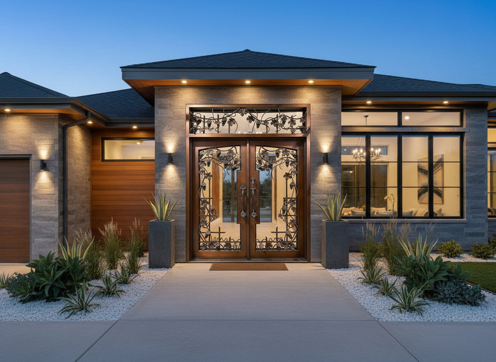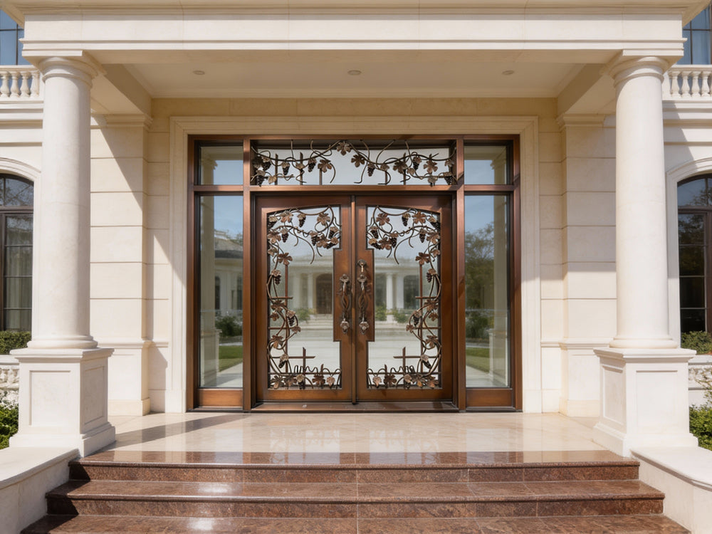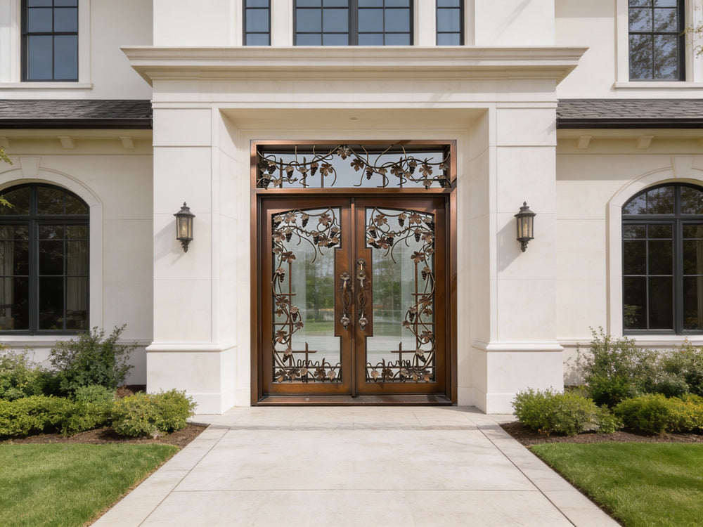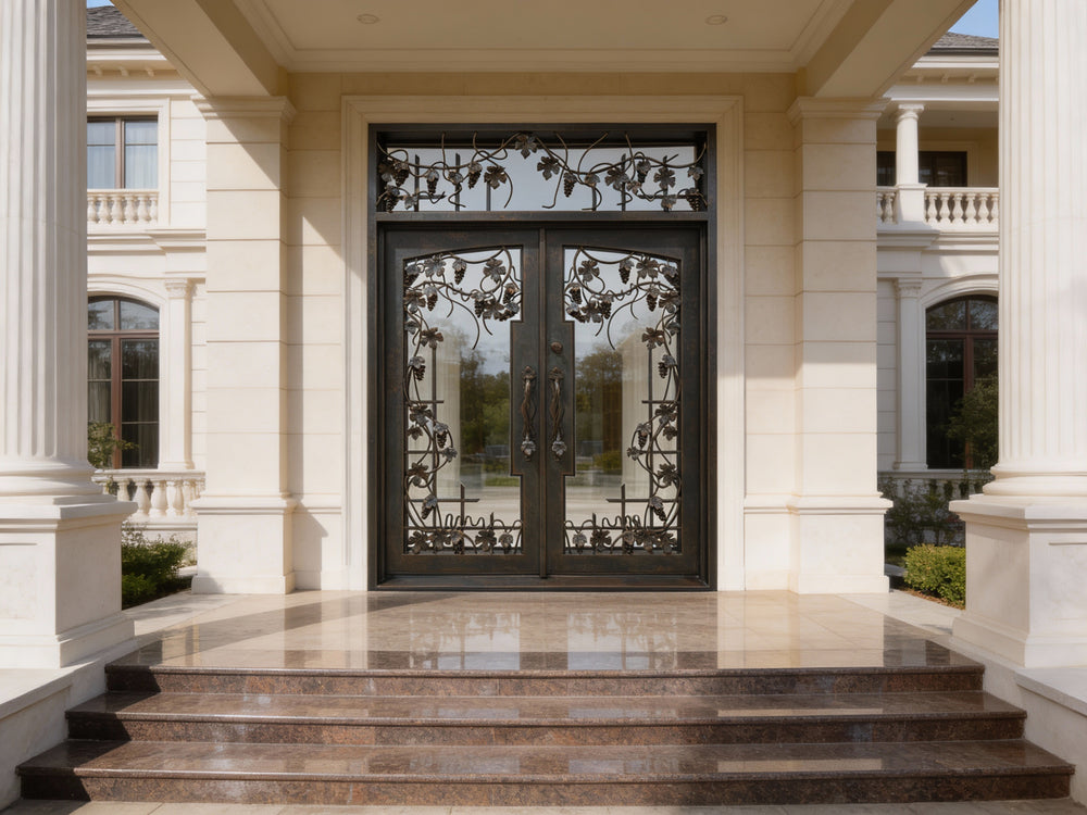 - Decorative Scroll-Work: Standard iron entry doors come with decorative 5/8" square solid steel scrollwork.