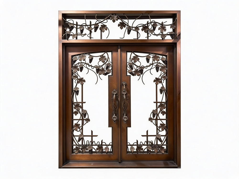 Decorative Wrought Iron Door Grapevine Motif with Dual Steel Panels Square Top With kickplate Model # IWD10422