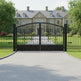 diamond scroll wrought iron gate, arched ornamental driveway gate, heartline estate gate, Canadian custom gate, Taimco decorative gate, luxury property gate, heavy-duty artistic gate design