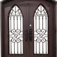 - Gothic-inspired arch paneling and pointed crown contours